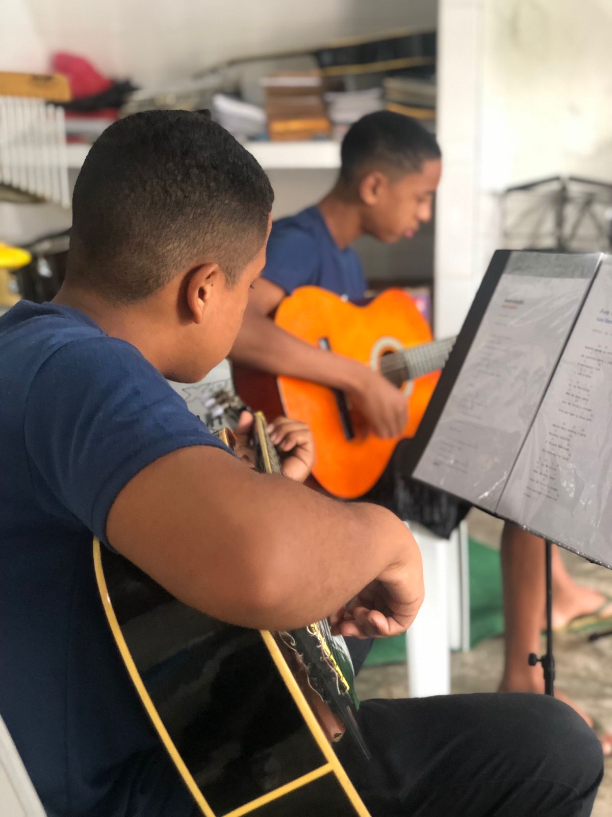- Incentivo à música, com foco no desenvolvimento da criatividade/expressão e saúde emocional.